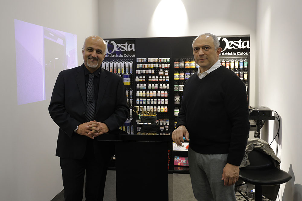 On the opening day of the Tehran Art Fair, Hamidreza Shafiei, CEO of Vesta Color, and Navid Eghbali, Head of the Vesta Color Factory, visited the Vesta Color booth.
